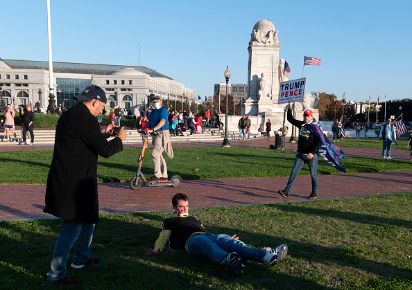 An injured supporter of US President Donald Trump falls after being assaulted by an unknown assailant in Washington, DC, during a rally on November 14, 2020. (Photo by ANDREW CABALLERO-REYNOLDS / AFP) (Photo by ANDREW CABALLERO-REYNOLDS/AFP via Getty Images)