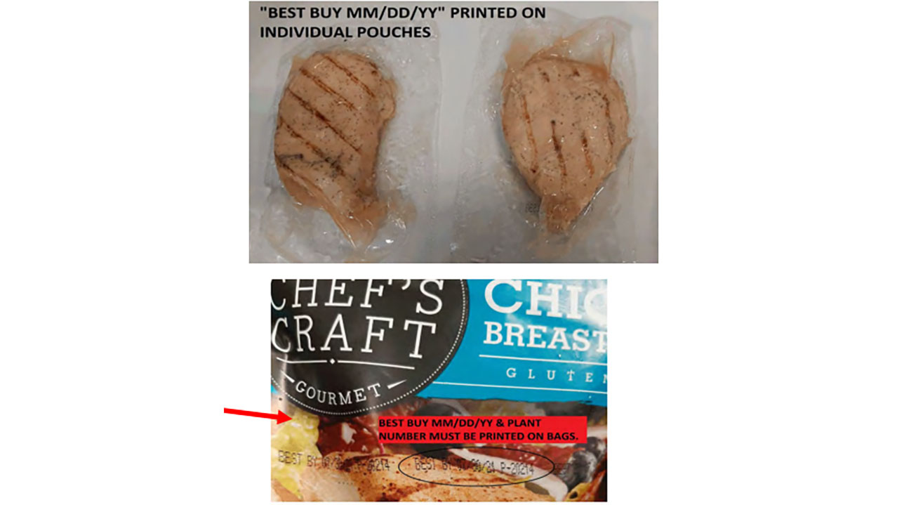 - 6-pound cases containing 24 individual packages of 4-ounce All Natural Fire Grilled Chicken Breast with the “use by” date of March 5, 2023.