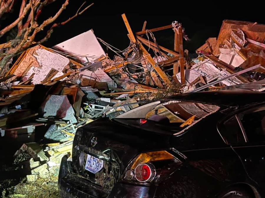 He said he’s got a generator to keep their refrigerator going, and feels fortunate the damage wasn’t worse. He said his neighbor’s home was “leveled.”