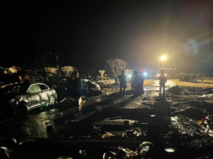 “The sky lit up and there was a lot of pop-pop-popping. And the loud thunder. And then it sounded like a train, a freight train coming through. The roar of a freight train. That’s when all the damage occurred,” Sharon Benson, who lives in the neighborhood, said by phone.