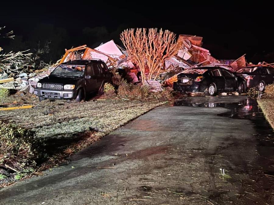 The weather service’s office in Tallahassee, Florida, reported that preliminary results of a damage survey show a tornado of at least EF-2 intensity struck Monday in the rural Georgia community of Damascus in Early County.