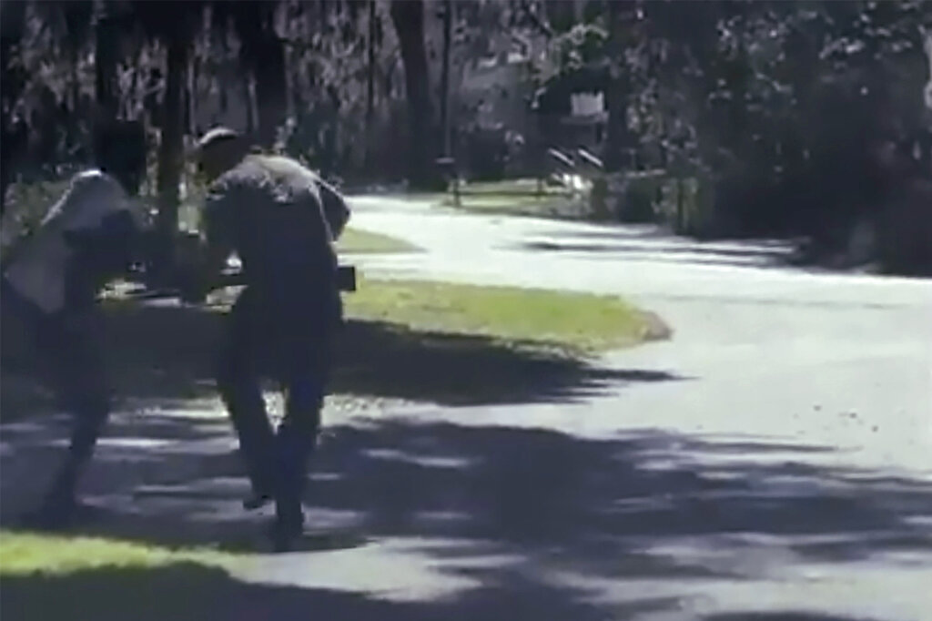 She said the grainy cellphone video shows Travis McMichael raise his shotgun beside the truck as Arbery approaches and tries to run around the opposite side. Travis McMichael is then seen stepping in front of the truck with the gun to confront the fleeing man, she said.