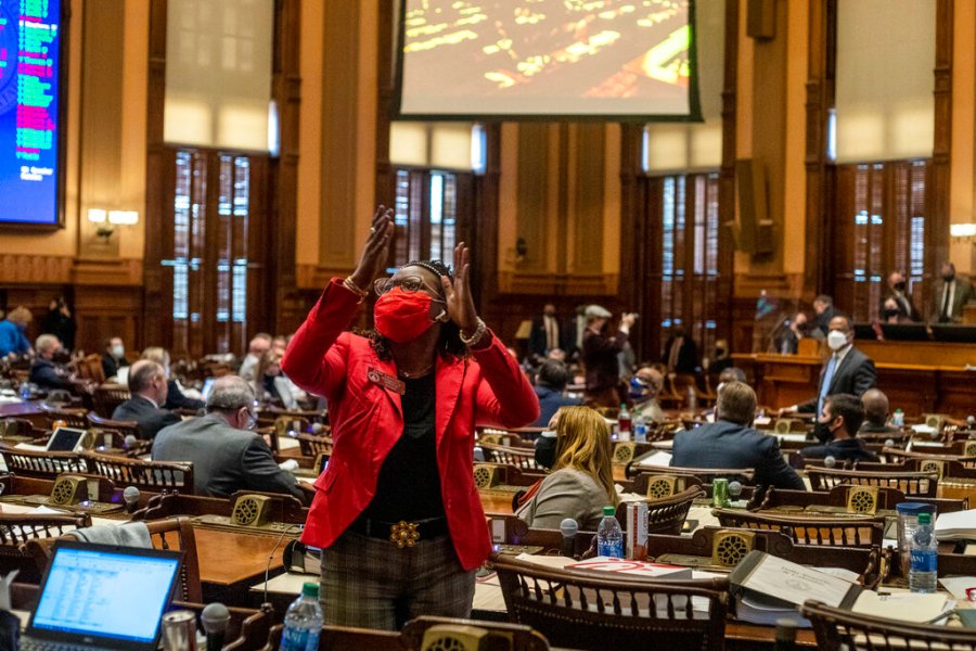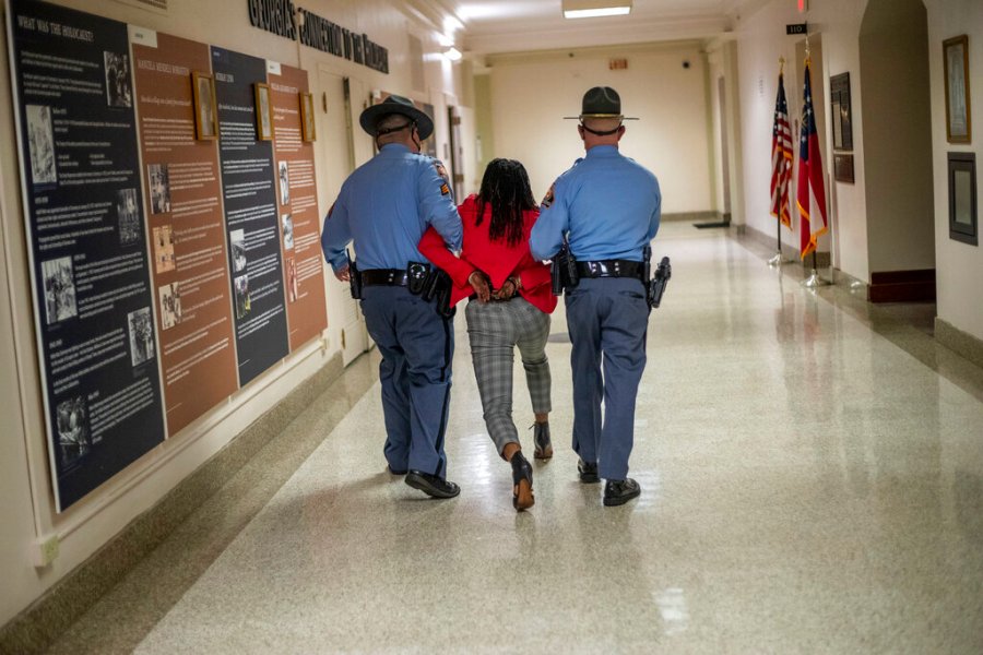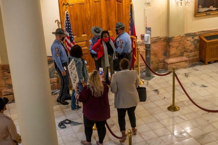 The law against disrupting a legislative meeting was challenged as unconstitutional in a lawsuit filed last year after people including Nikema Williams, then a state senator and now a U.S. representative, were arrested at the Capitol while protesting election results in 2018. All charges were dismissed in 2019.