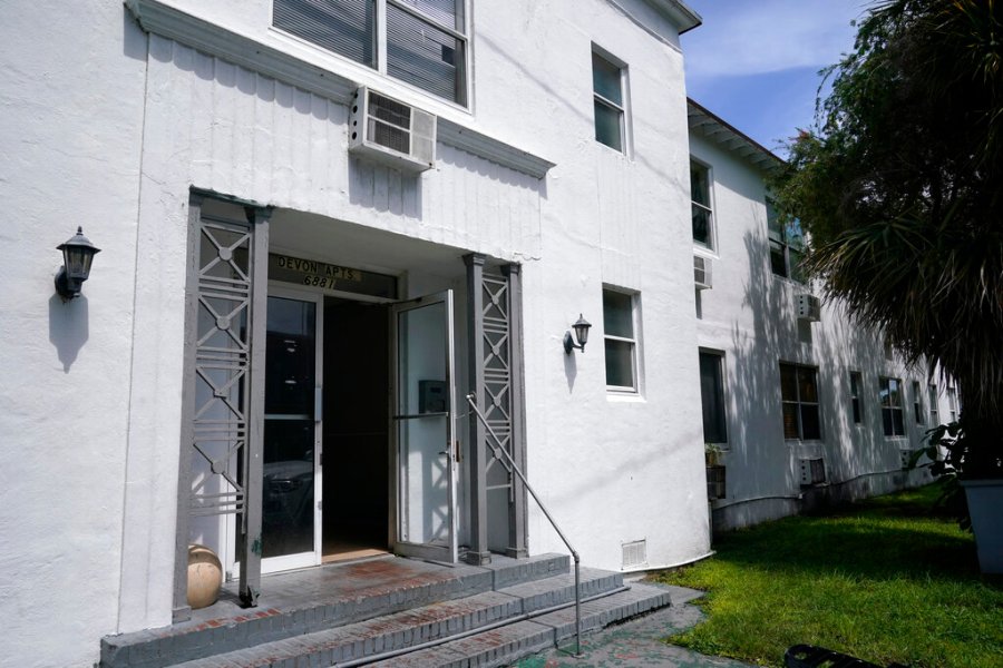 The Devon apartment building is shown Wednesday, July 14, 2021, in Miami Beach, Fla. Residents of the 82-year-old building were ordered to evacuate this week because of concrete deterioration. The building is several miles from Surfside, where the Champlain Towers South collapsed almost three weeks ago. (AP Photo/Lynne Sladky)