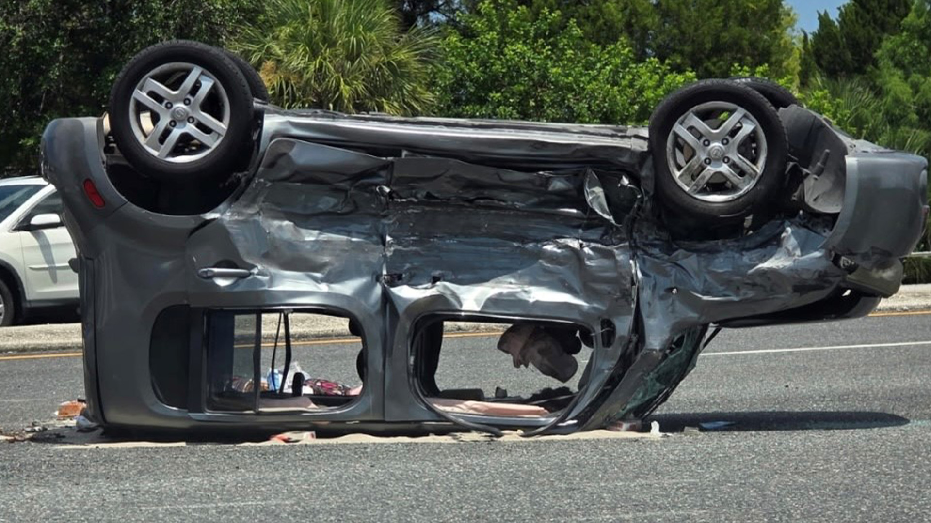 The crash caused the woman’s Nissan Cube to overturn, and six children who were passengers in the vehicle were thrown onto the roadway, according to authorities.