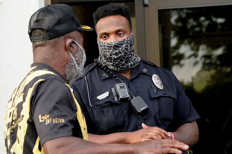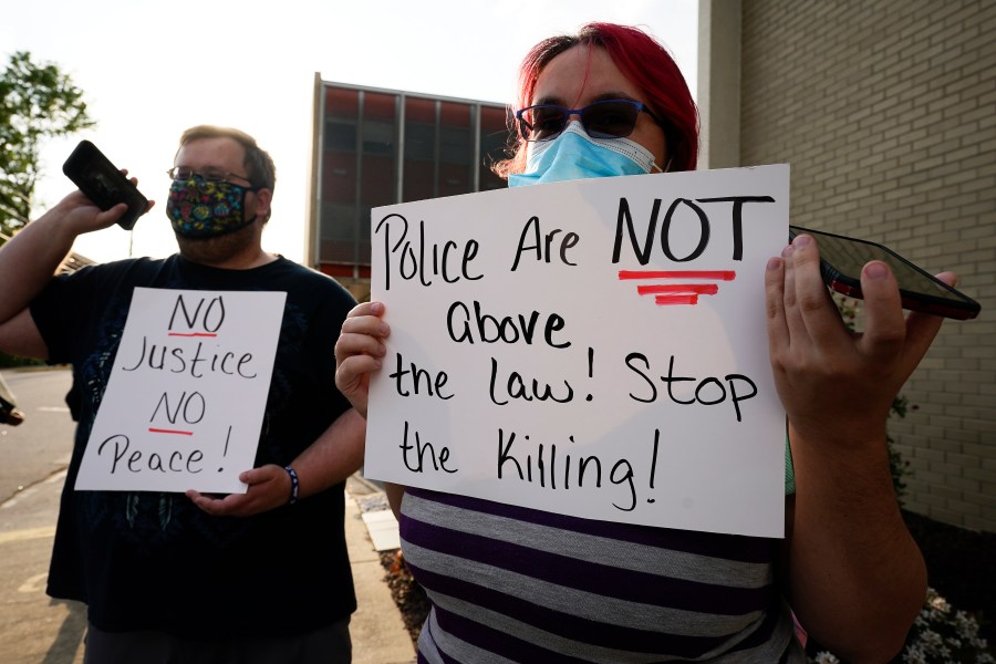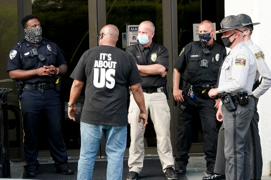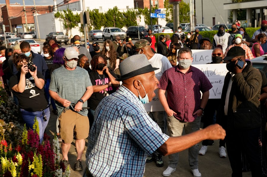 “I’m afraid as a Black man,” an emotional Adkins said, as a crowd of more than 100 people gathered outside the meeting, which is closed to the public because of the coronavirus pandemic. Later he added, “It hurts to be a Black man at this time. … We’re hurting.”