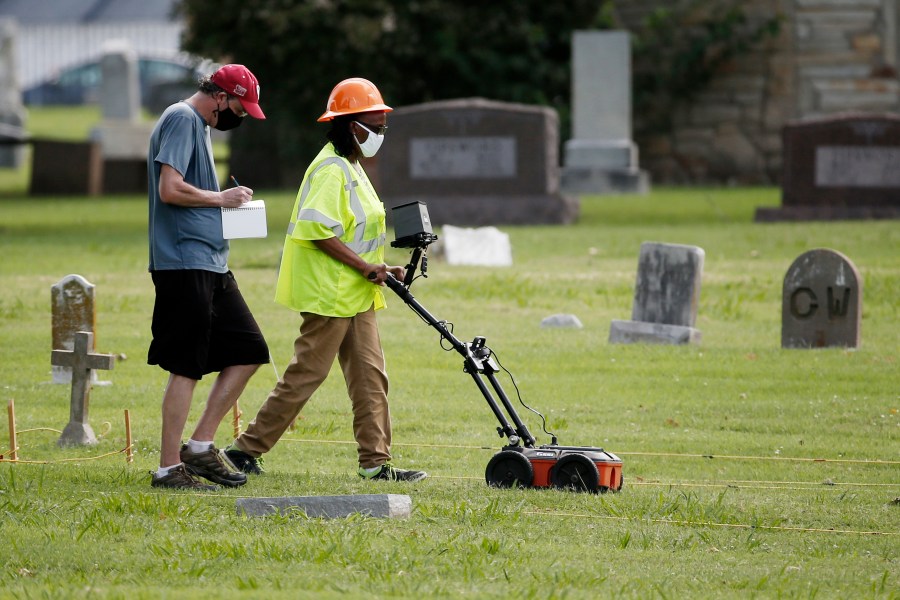 The search got underway last year, and researchers in October found at least 12 sets of remains in coffins at Oaklawn Cemetery, where most of the Black victims whose deaths were confirmed had been buried in unmarked graves. They looked at the remains inside the coffins but covered them back up for further study at a later date and haven’t yet confirmed they are those of massacre victims.