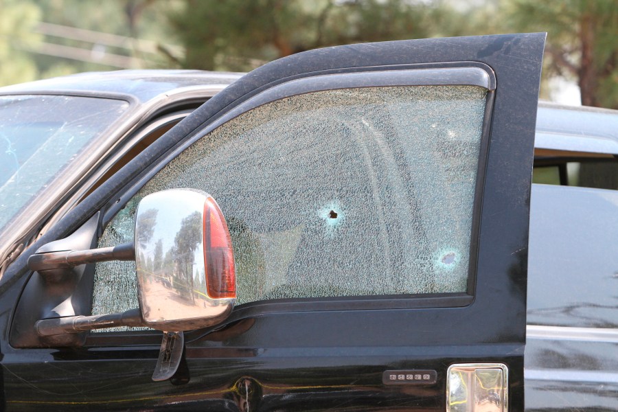 Witnesses said helmets, shoes and crumpled and broken bicycles were strewn across the street after the crash, and a tire was wedged into the grill of the truck, which had damage to its top and sides and a bullet hole in a window.