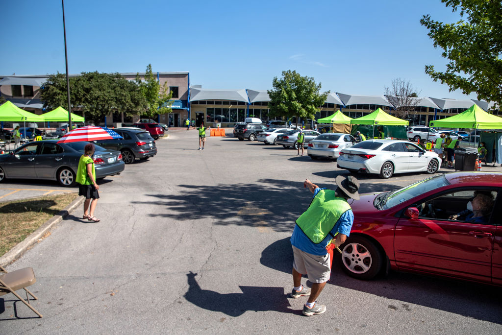 AUSTIN, TX – OCTOBER 13: A worker directs traffic at a ballot drop off location on October 13, 2020 in Austin, Texas. The first day of voting saw voters waiting hours in line to cast their votes. Gov. Greg Abbott announced earlier this year that he would expand early voting for the election beginning on Oct. 13. Mail in voting began on Oct. 8 and has been part of a legal battle after Gov. Abbott declared each county may only have 1 mail in ballot drop off center, the ruling was later struck down in federal court but then the decision was upheld when a stay was ruled in the overturning. (Photo by Sergio Flores/Getty Images)