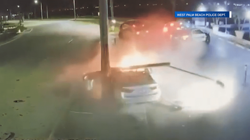 Video released by the West Palm Beach Police Department shows the crash happened just before 2 a.m. on Oct. 27.