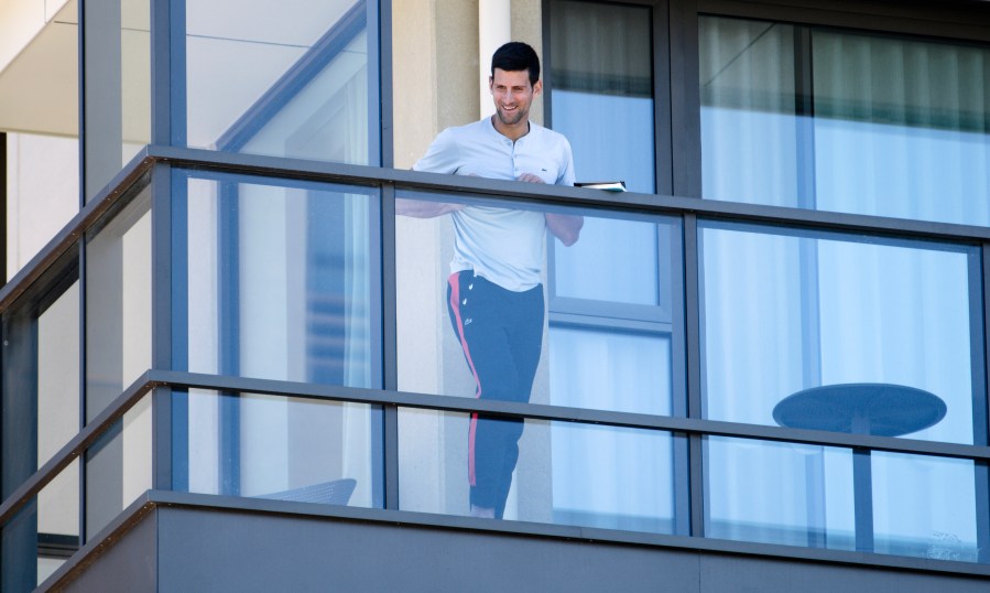 Djokovic is part of a smaller group of players who landed in the South Australia capital of Adelaide, along with Serena Williams, Naomi Osaka and Rafael Nadal, and are allowed outside for practice sessions under bio-secure protocols.