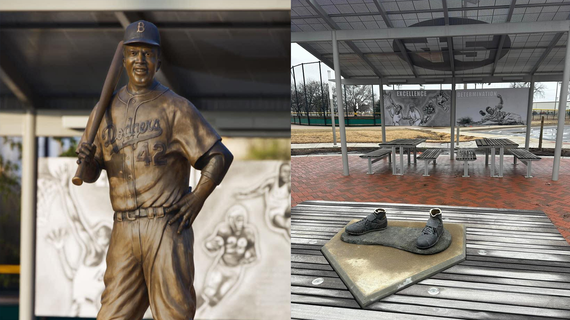 The life-size statue of Jackie Robinson was brought to the park in 2021 by the League 42 Foundation, a nonprofit that provides urban children the opportunity to play youth baseball at a low cost.