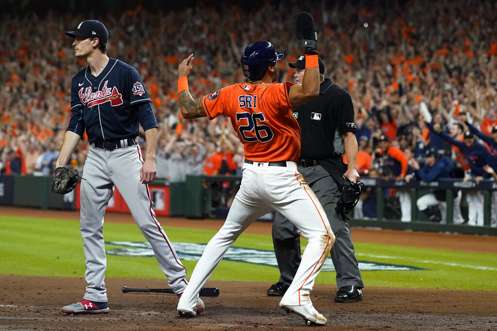 Altuve hit a leadoff double and scored in the first inning before adding a solo homer in the seventh as the October-tested Astros rolled past the suddenly sloppy Braves. It was the 22nd career postseason homer for Altuve, tying Bernie Williams for second-most behind Manny Ramirez (29).
