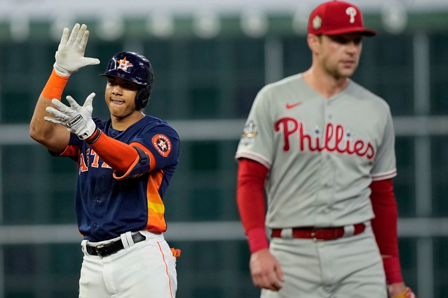 Jose Altuve, Jeremy Peña and Yordan Alvarez all doubled as Houston took a two-run lead four pitches in against Zack Wheeler. Shortstop Edmundo Sosa’s throwing error allowed another run in the first.