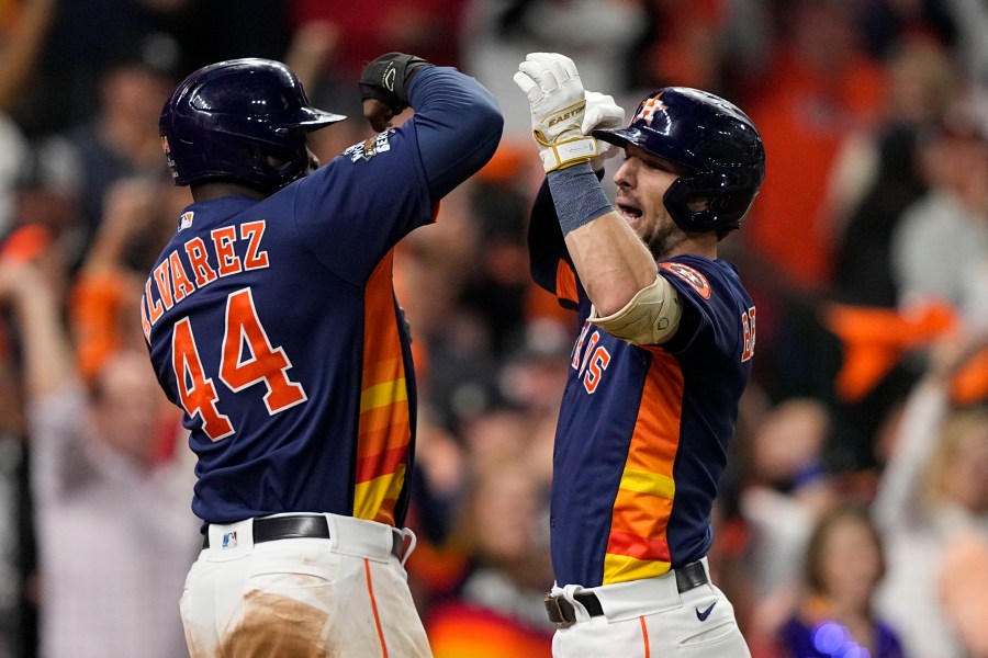 Altuve, who broke out of a 4-for-37 postseason slump with three hits, lined a sinker into left on Wheeler’s first pitch and Peña drove a curveball into the left-field corner on the second for a 1-0 lead. Alvarez fouled off a pitch and drove a slider high off the 19-foot wall in left.