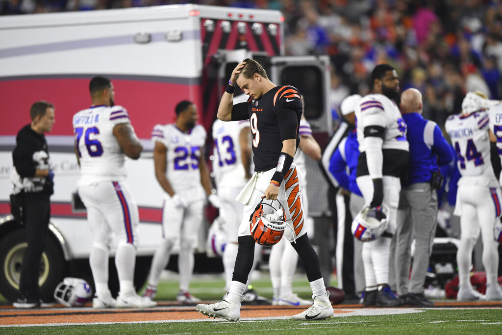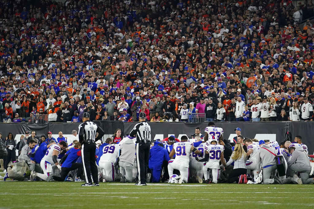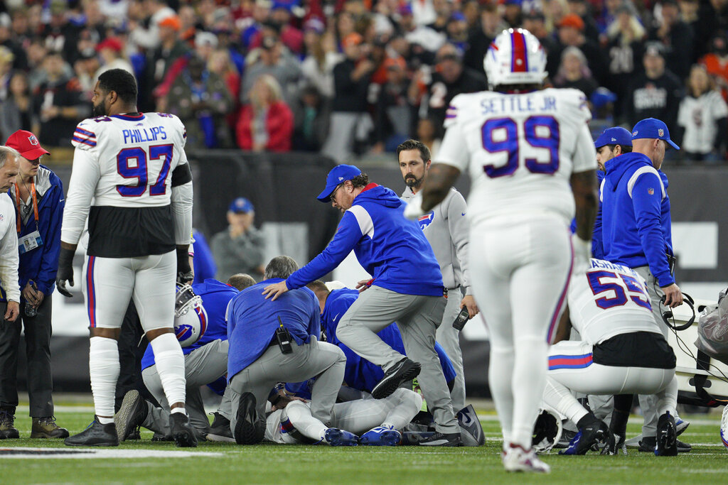 The Monday night matchup between the Bills and Bengals was suspended following the serious injury to Hamlin, which occurred at the 5:58 mark of the first quarter with the Bengals leading 7-3.