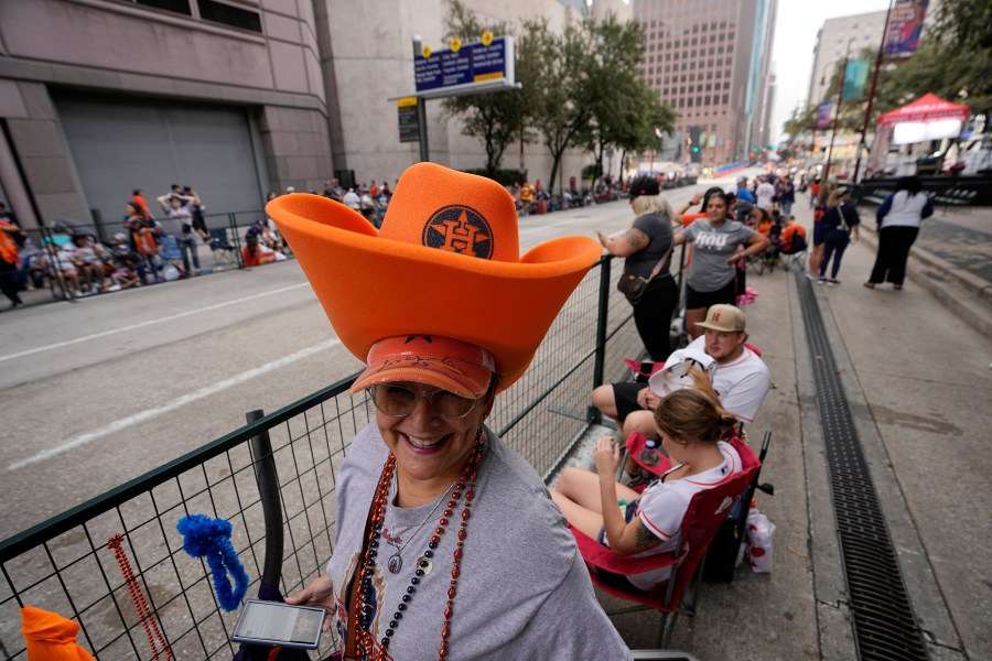 Houston Mayor Sylvester Turner said he encouraged fans coming to the victory parade to “arrive early, wear Astros’ colors, be loud and celebrate safely.” The parade started at noon.