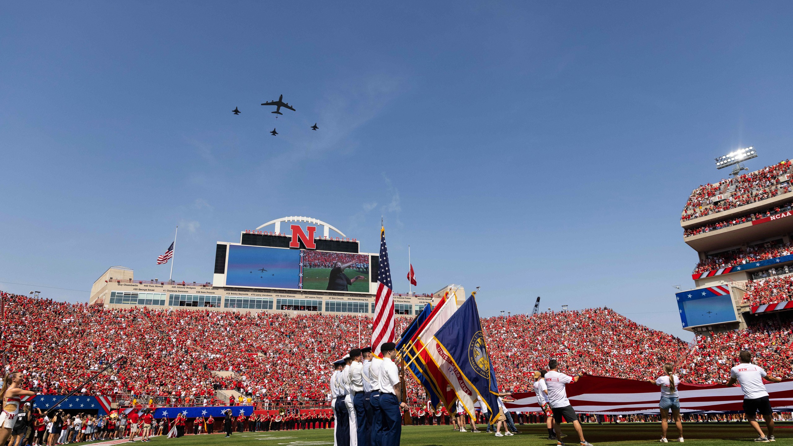 Elsewhere, Army’s players also carried flags onto the field for their home game against Western Kentucky. At Nebraska, former Navy SEAL Damian Jackson, a 29-year-old backup linebacker, led the Cornhuskers onto the field carrying a flag and flanked by first responders, including a health care worker.