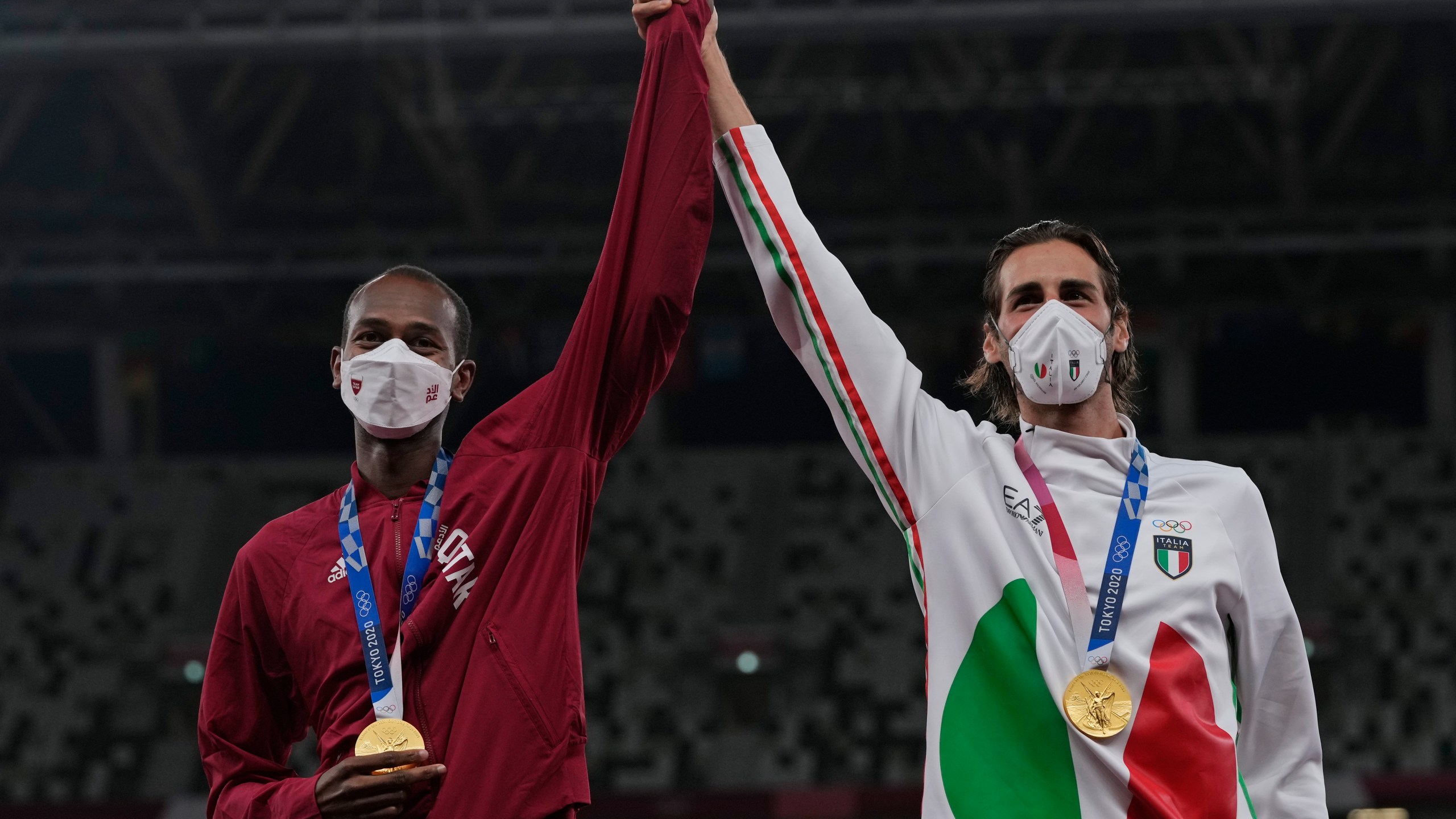 “Probably I will never ever share a gold medal with anybody else than Mutaz,” Tamberi said. “We were the only two athletes who have had the worst injury possible for a high jumper. I know what he did to be back. He knows what I did to be back.”