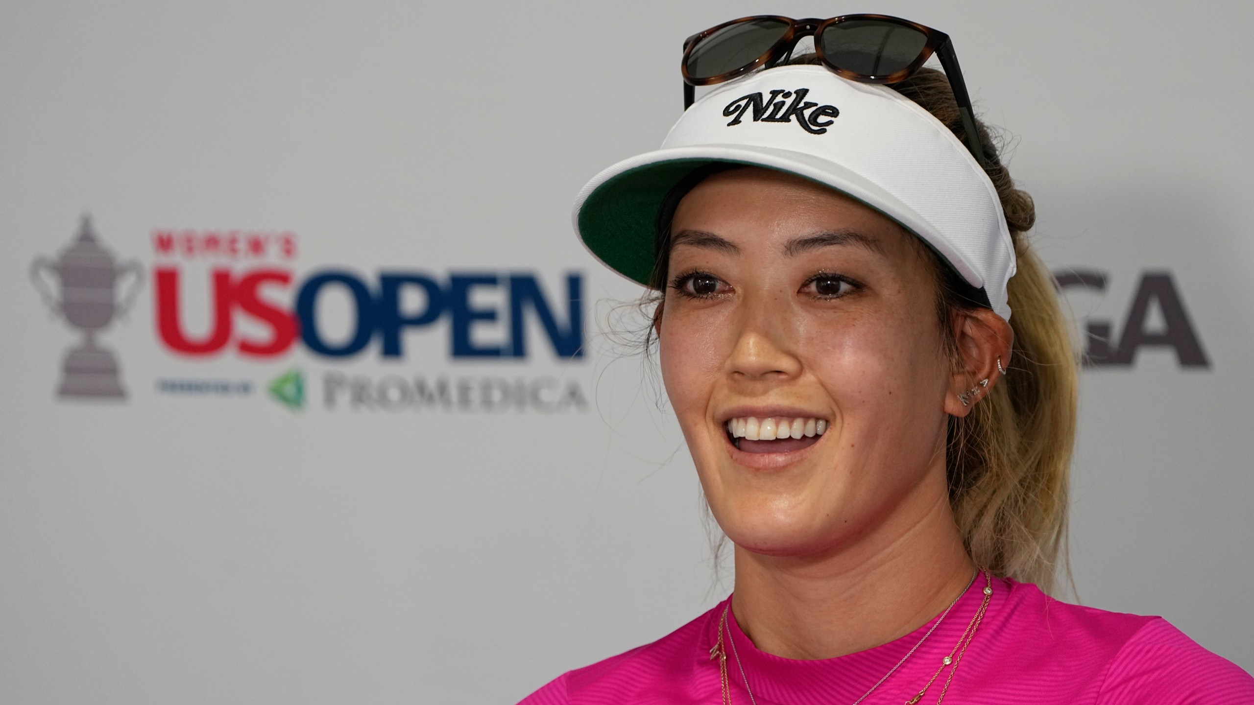 Michelle Wie West speaks during a news conference after a practice round for the U.S. Women’s Open golf tournament at the Pine Needles Lodge & Golf Club in Southern Pines, N.C. on Tuesday, May 31, 2022. (AP Photo/Chris Carlson)