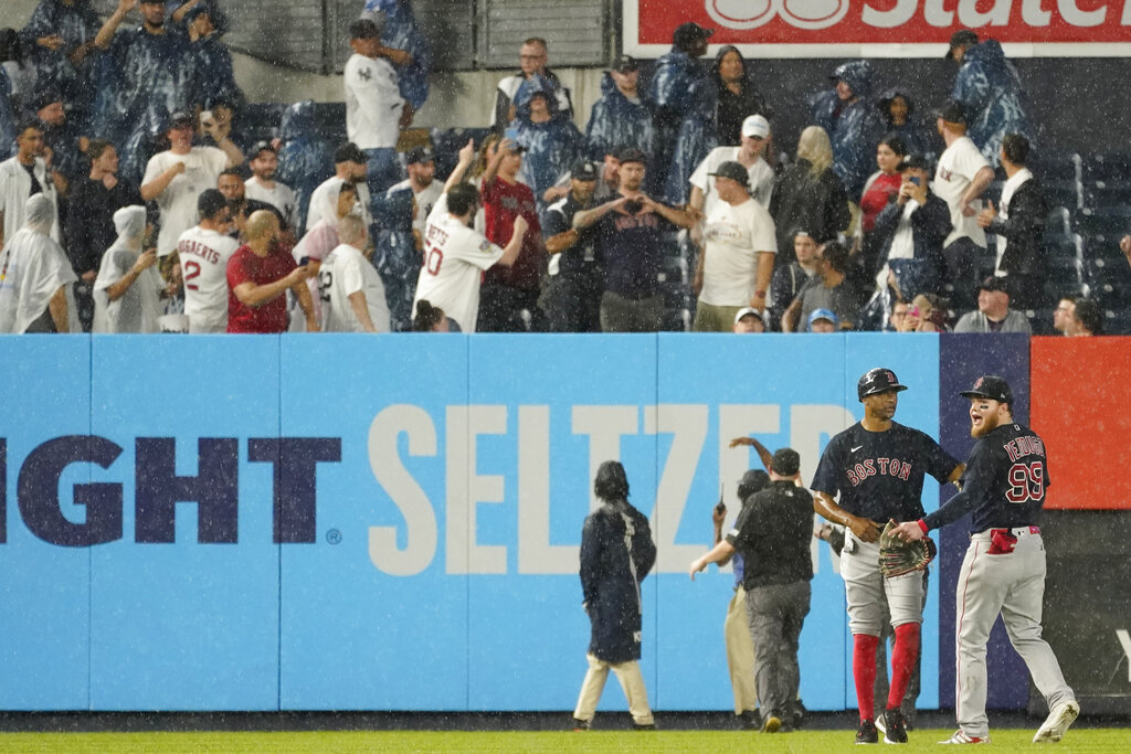 Verdugo returned to left field when play resumed following a discussion with umpires near Boston’s dugout.