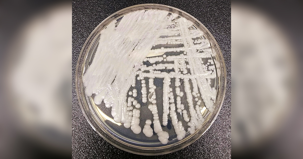 This photo made available by the Centers for Disease Control and Prevention shows a strain of Candida auris cultured in a petri dish at a CDC laboratory. On Thursday, July 22, 2021, the CDC said they now have evidence of the untreatable fungus spreading in a Washington, D.C, nursing home and at two Dallas-area hospitals. (Shawn Lockhart/CDC via AP)