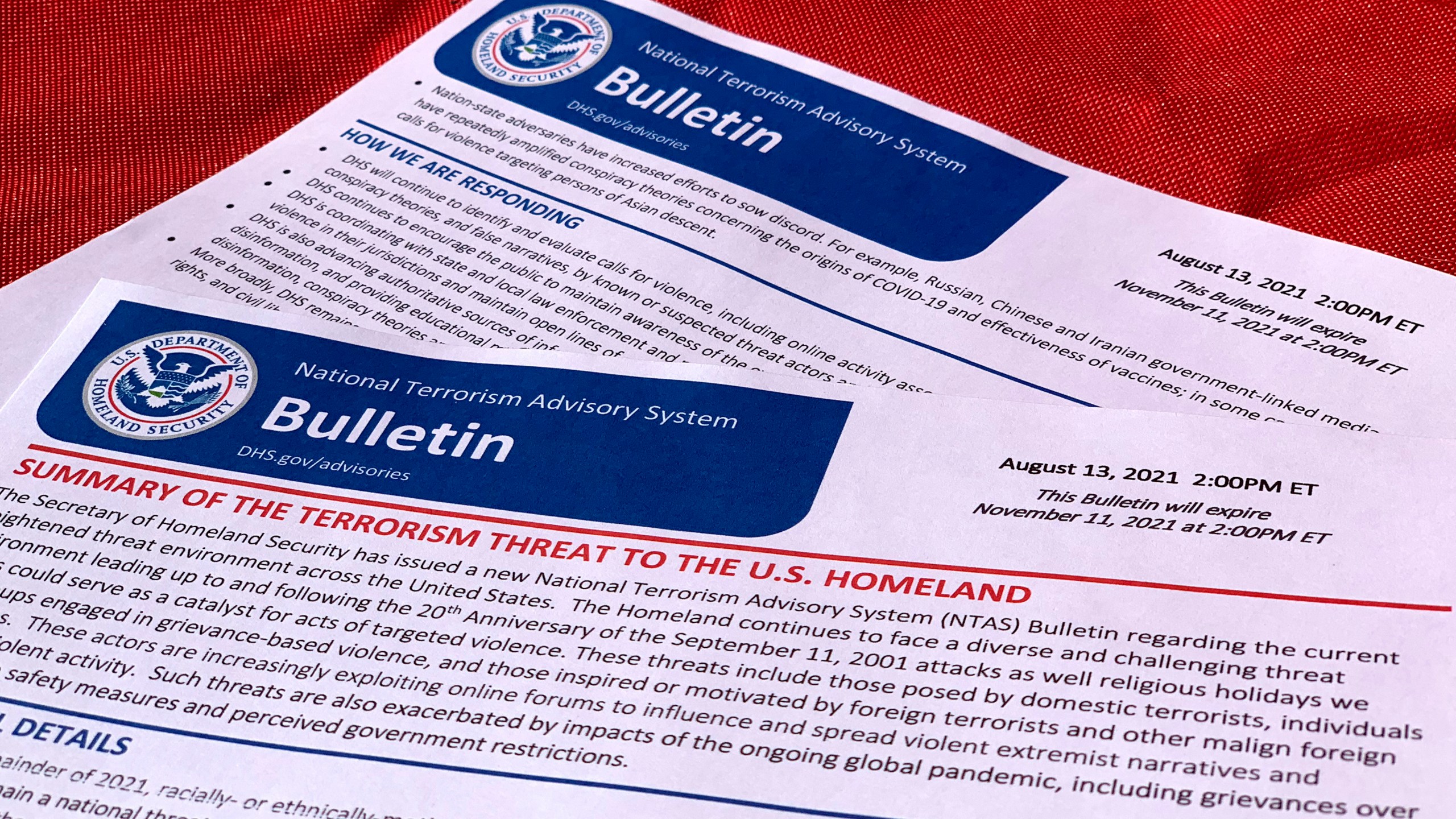 DHS did not cite any specific threats in the National Terrorism Advisory System Bulletin. But it noted that the U.S. is in a “heightened threat environment,” fueled by factors that include violent extremists motivated by racial and ethnic hatred and resentment of restrictions imposed during the pandemic.