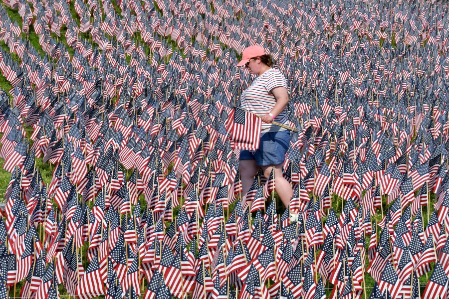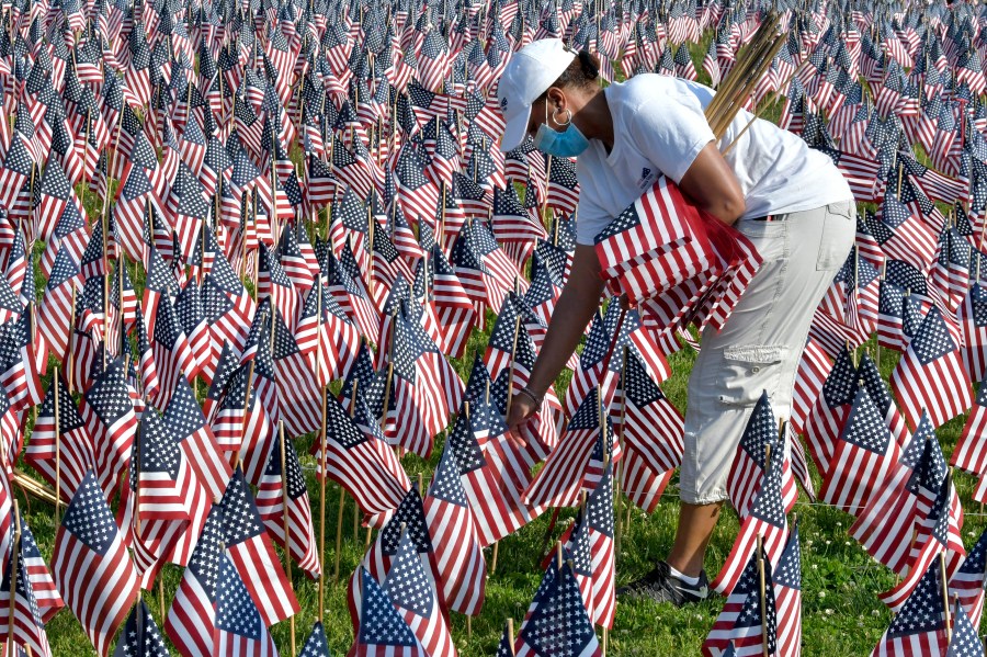 About 10 miles away, scores of other vets and volunteers do the same, placing more than 37,000 small flags on the downtown Boston Common — a sea of red, white and blue meant to symbolize all the Massachusetts soldiers killed in battle since the Revolutionary War. It’s an annual tradition that returns in full this year after being significantly scaled back in 2020 because of the pandemic.