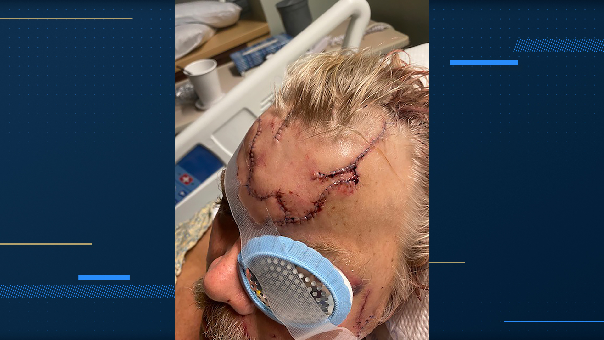 The mauling left Minish with a crushed jaw, a puncture wound in his scalp so deep the doctor told him he could see bone, lacerations and many stitches after a 4½-hour surgery. He also is wearing a patch over his right eye, saying the doctors are worried about it.