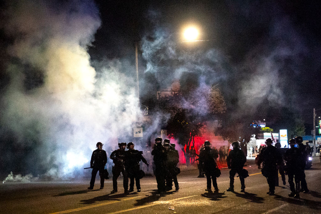 Oregon State Police troopers assisted local police at the protest. State police frequently helped police at the protests until early August, when they withdrew. Their return on Friday came days after Gov. Kate Brown announced the move.
