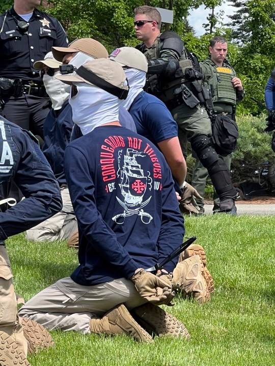 The 31 Patriot Front members were arrested with riot gear after a tipster reported seeing people loading up into a U-Haul like “a little army” at a hotel parking lot in Coeur d’Alene, Idaho, police said.