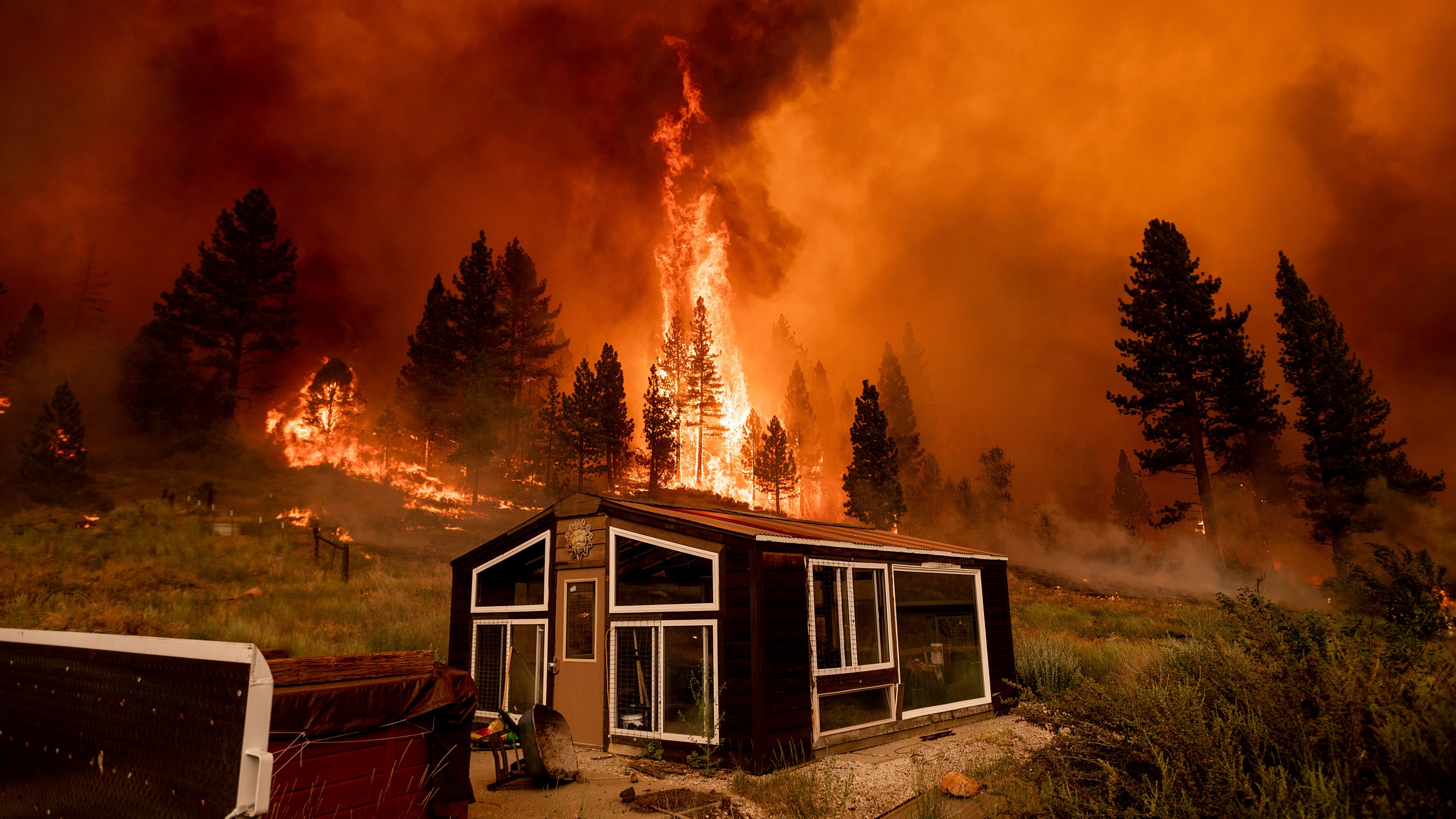 The conflagration has forced 2,000 people to evacuate and is threatening 5,000 buildings, including homes and smaller structures in a rural area just north of the California border.