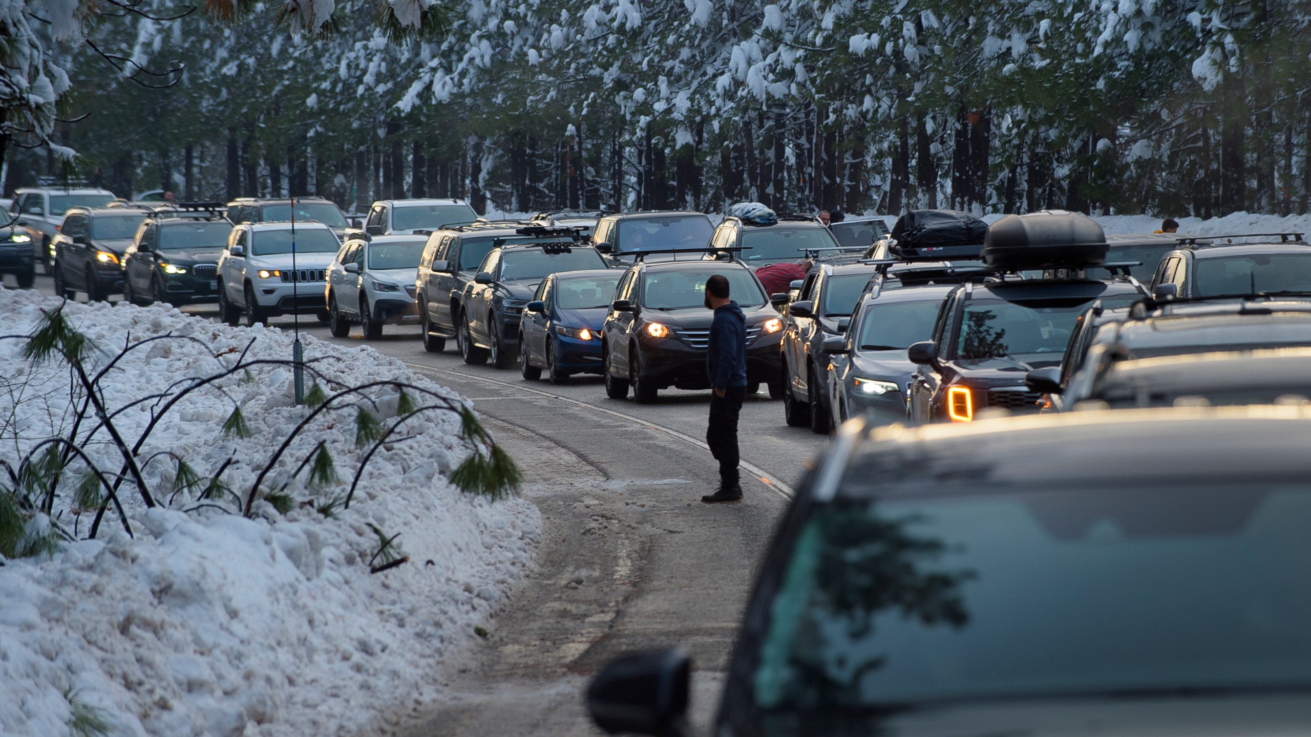 Major highways through the snow-blanketed Sierra Nevada remained open, but chain requirements were in effect in many areas.