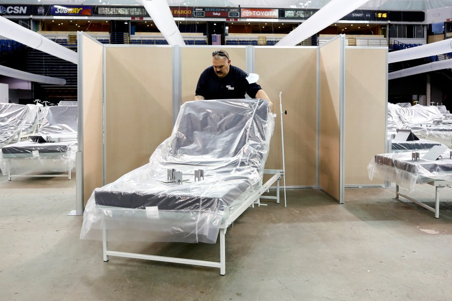 The second site is at the former home of the Sacramento Kings professional basketball team. The goal is to have the first 20 beds ready by Wednesday in a practice gymnasium, then prepare another 224 beds in the main arena — some in luxury suites where well-heeled fans once watched games.