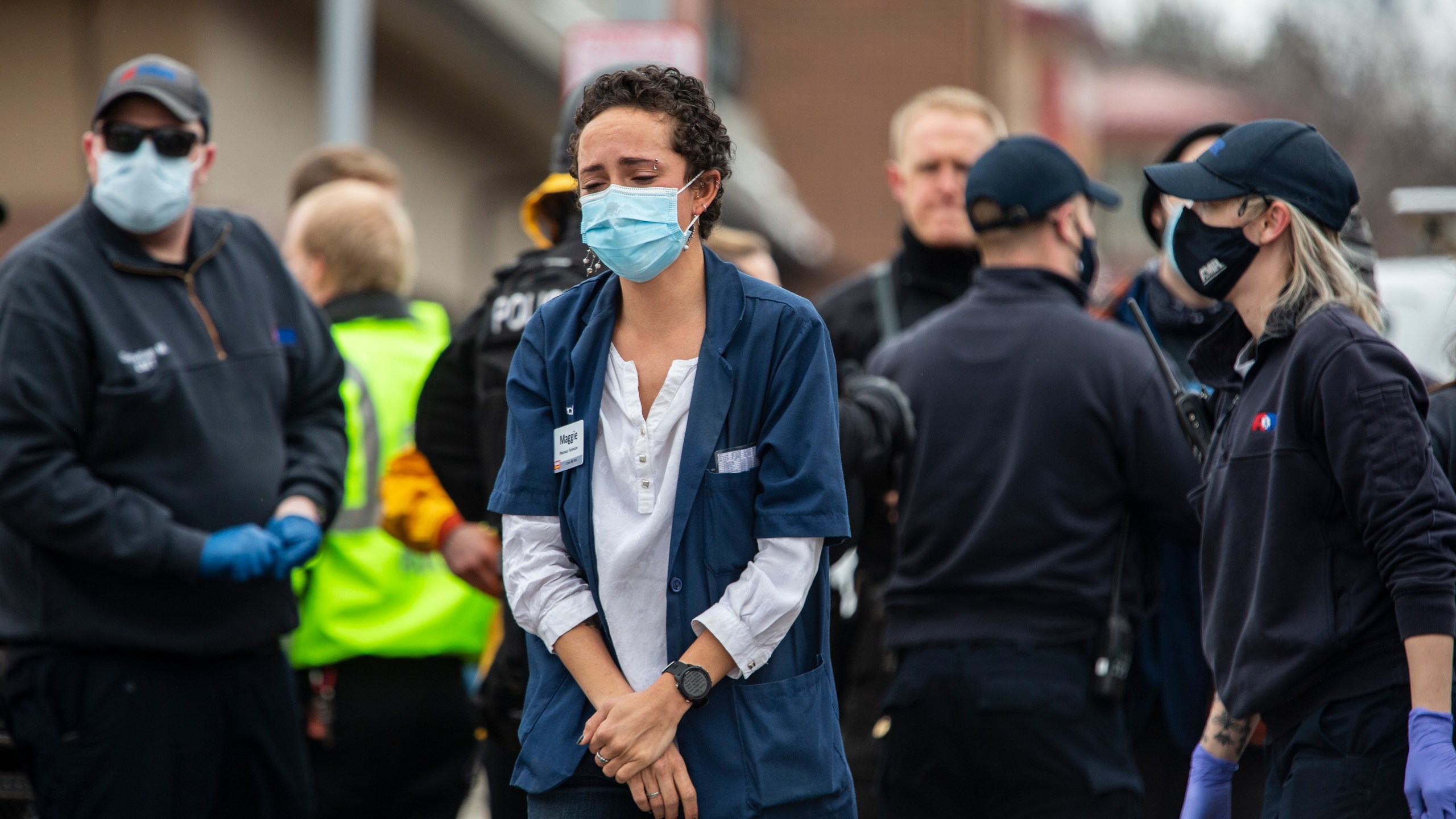 It’s unclear if anyone had been injured, but a shirtless man with blood running down his leg was escorted out of the King Soopers store in handcuffs by two police officers.