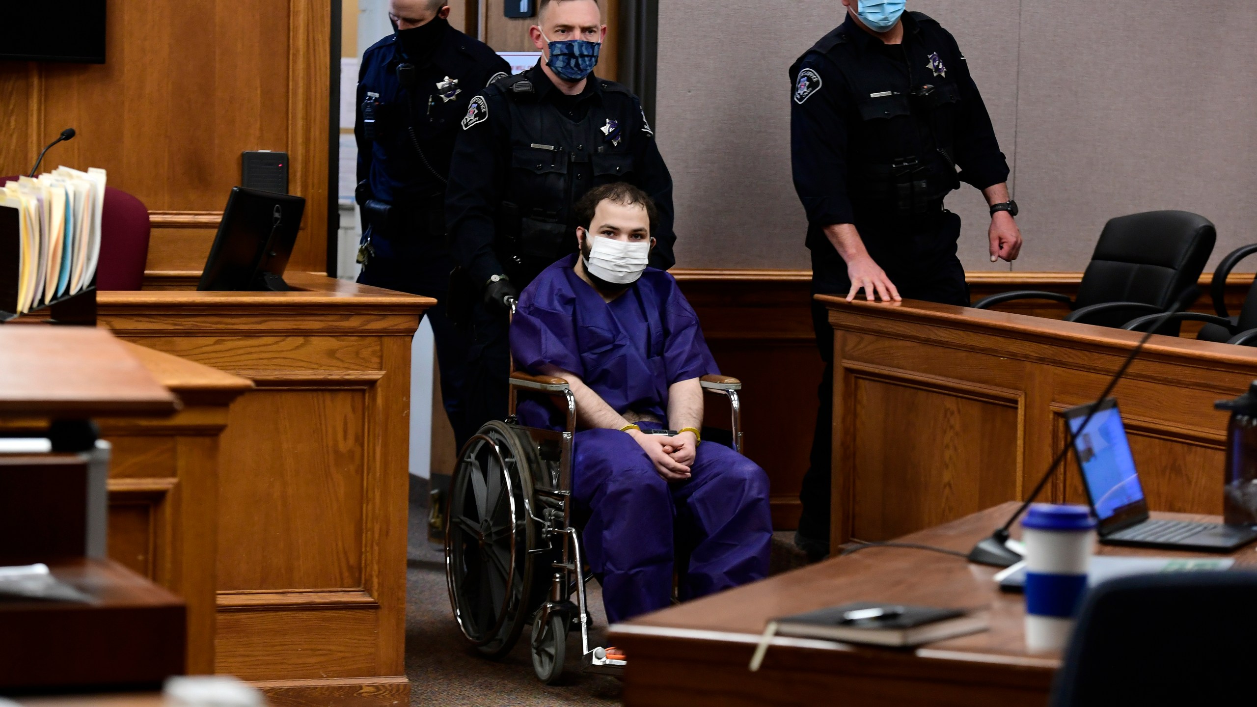 BOULDER, CO – MARCH 25: Ahmad Al Aliwi Alissa, 21, appears before Boulder District Court Judge Thomas Mulvahill at the Boulder County Justice Center in Boulder, Colorado on March 25, 2021. Alissa is suspected of shooting and killing 10 people at a King Soopers grocery store in Boulder on Monday, March 22. The Boulder County district attorney charged Alissa with 11 counts in connection to the shooting. Alissa has been held in jail since his arrest Monday at the scene of the shooting on suspicion of 10 counts of first-degree murder and one count of attempted murder. (Photo by Helen H. Richardson/The Denver Post, Pool)