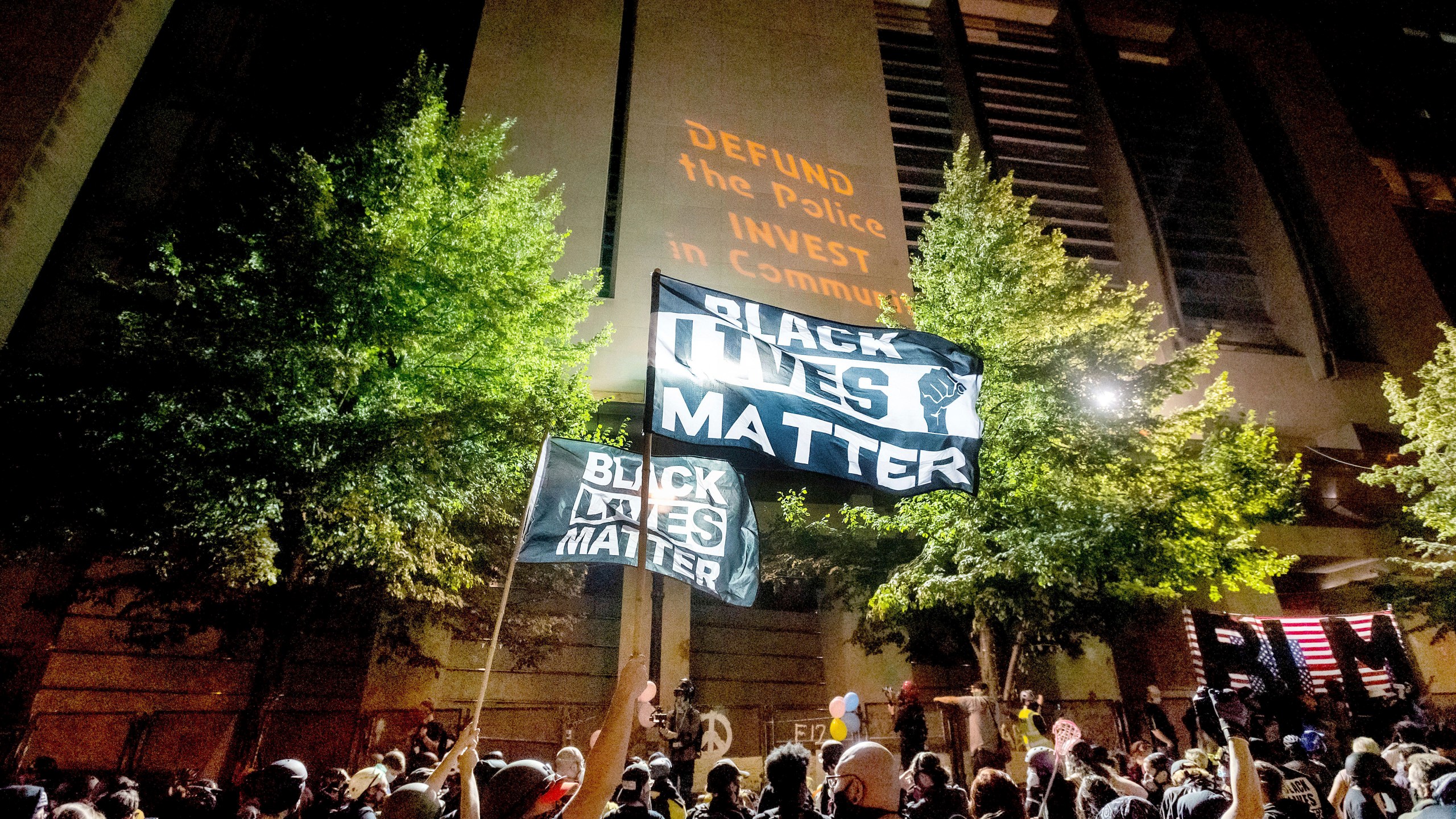 FILE – In this July 31, 2020 file photo, Black Lives Matter protesters gather at the Mark O. Hatfield United States Courthouse in Portland, Ore. At least two federal buildings in Portland have been closed and the FBI is investigating after a threat of violence was reported, the officials said Friday, Aug. 21, 2020. Investigators are trying to determine whether the threat is credible, the FBI said in a statement. The Mark O. Hatfield Federal courthouse, which was the site of weeks of violent protests last month, was closed, as was the Portland office of the U.S. Bankruptcy Court. (AP Photo/Noah Berger, File)