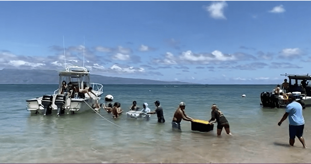 In the immediate aftermath of the fires, boats arrived daily ashore at Kahana Boat Ramp, about 20 miles north of Lahaina. Relief came in from the islands of Molokai, Oahu, and the Big Island of Hawaii. Residents there had heard the coconut wireless call and responded in droves.