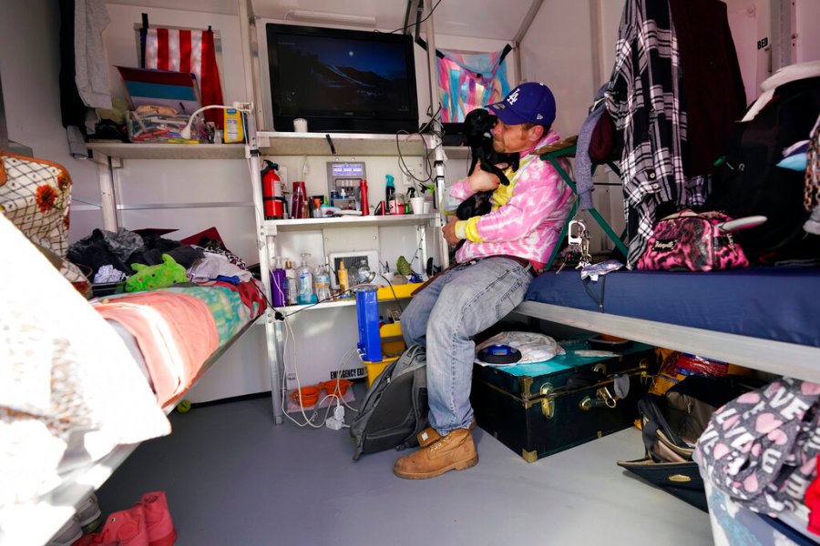 Then in early February, Skinner was handed the keys to one of the 39 prefab units at the one-acre plot in a North Hollywood neighborhood. She and her partner, John Golka, moved into the 64-square-foot (6-square-meter) space with their little dog, Smalls.