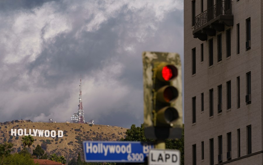FILE – In this Nov. 7, 2020, file photo, clouds move over the Hollywood sign in Los Angeles. The raging coronavirus pandemic has prompted Los Angeles County to impose a lockdown to prevent the caseload from spiraling into a hospital crisis but the order stops short of a full business shutdown that could cripple the holiday sale season. The “safer at home” public health order announced Friday, Nov. 27 calls for 10 million residents to stay home “as much as possible” and bars them from gathering with people outside of their household for public or private occasions. (AP Photo/Damian Dovarganes, File)