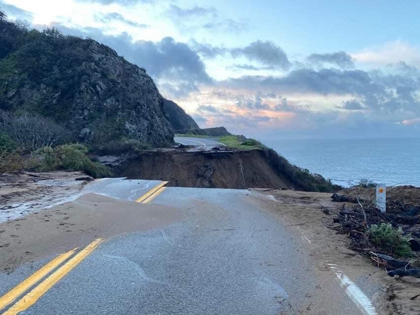 Caltrans crews responded to a segment of road that collapsed near Mile Marker 30 near Big Creek Bridge in Big Sur and closed the highway indefinitely.
