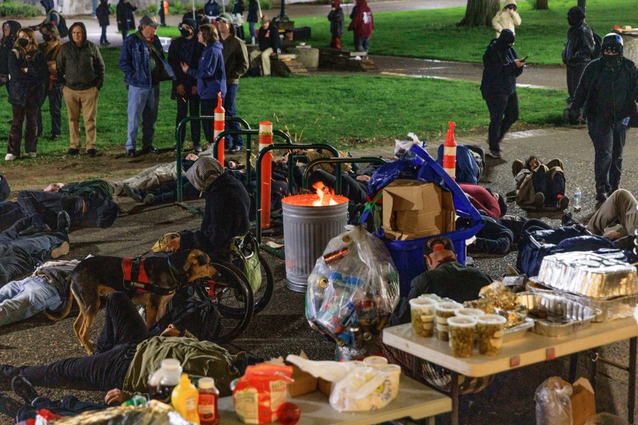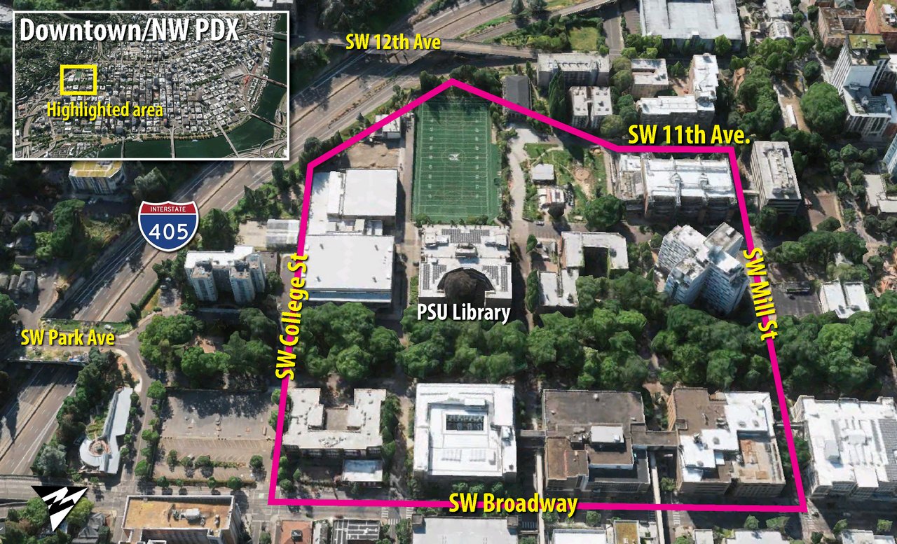 Portland State University closed its campus since the “illegal activity” began Monday, urging students and faculty to avoid the area around the library.