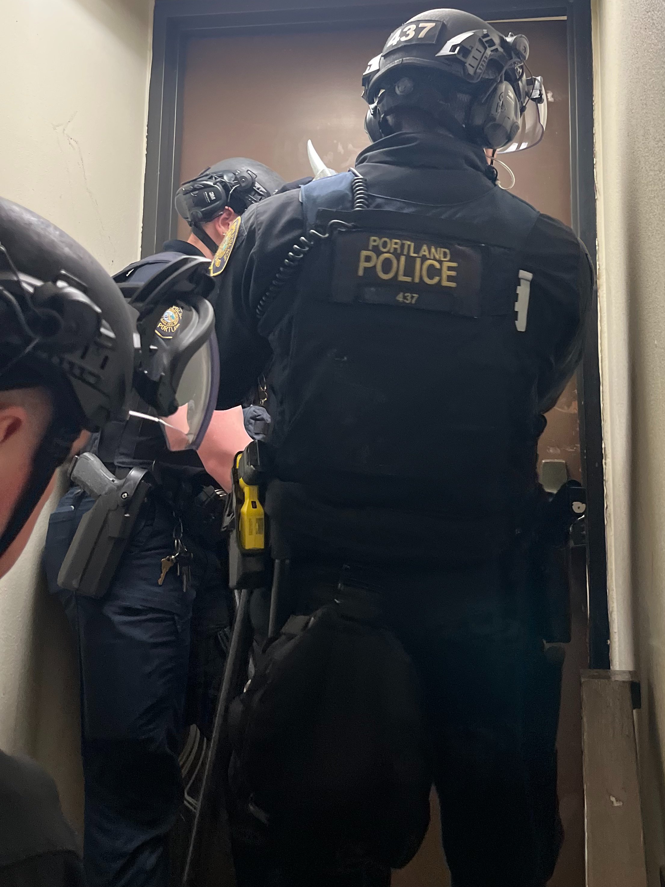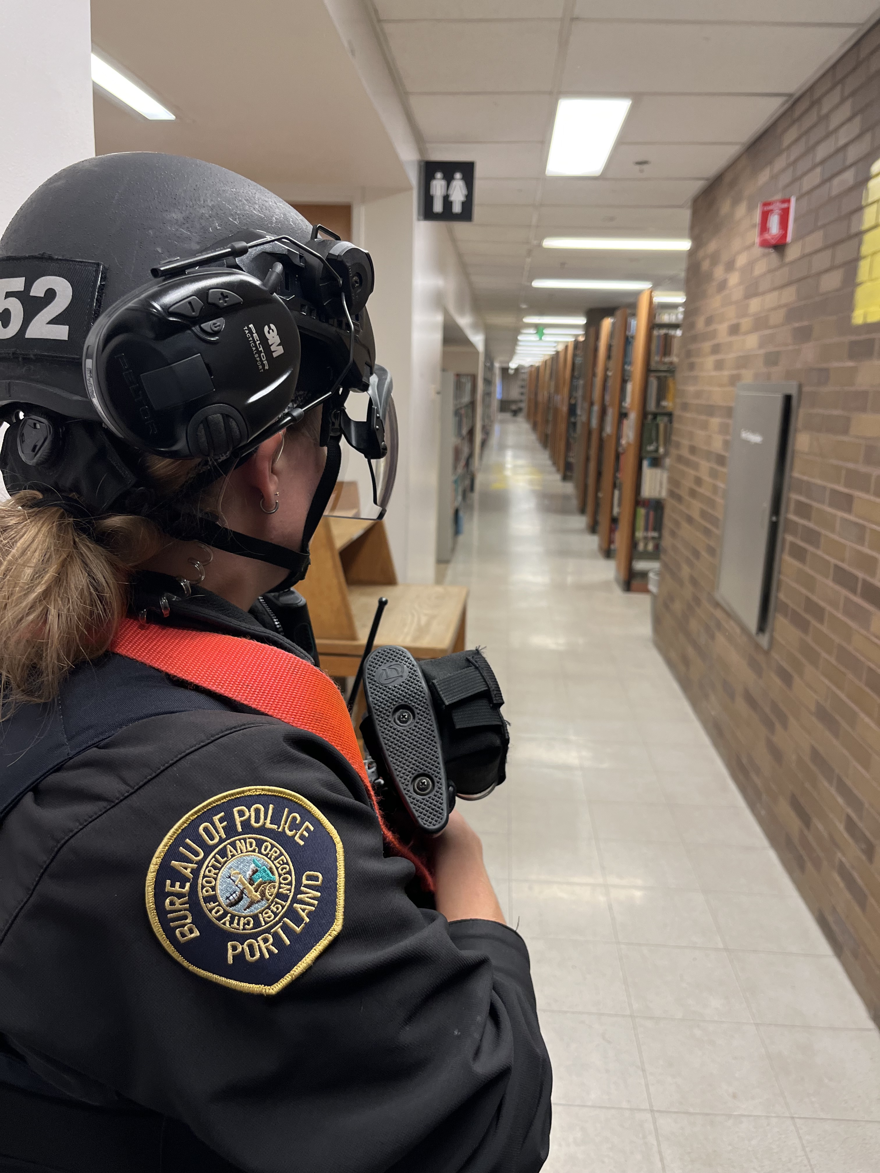 Portland police officers clear out Portland State University library. (Credit: PPB)