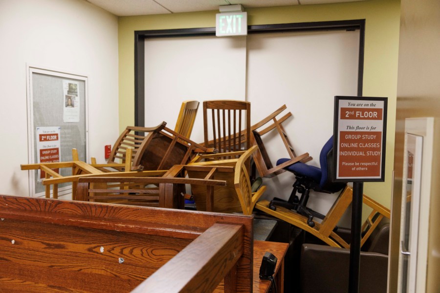 NewsNation’s affiliate KOIN was able to go inside Millar Library on Tuesday, where the crew observed graffiti, broken glass and smashed computers, along with blocked emergency exits. However, the books in the library appeared to be untouched.
