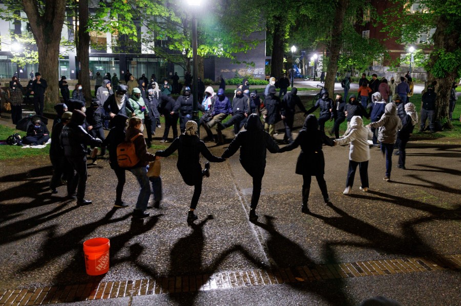 According to a PPB news release, a group of pro-Palestinian protesters unlawfully entered the university’s library after leaving a peaceful campus protest on Monday.
