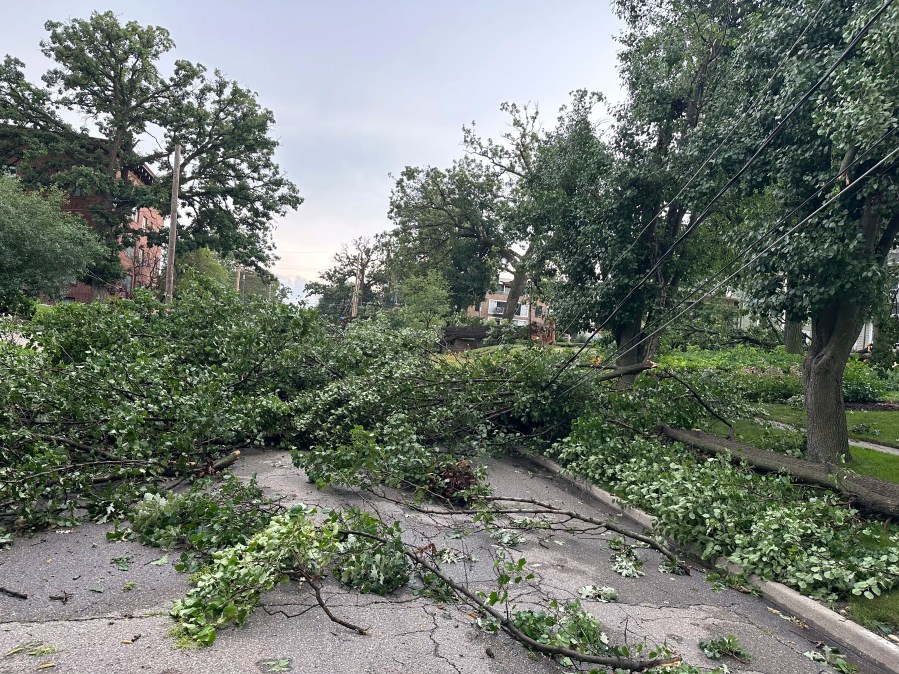 Tree limbs could be seen toppled over in Ukraine Village in Chicago, Illinois, on July 15, 2024. (Credit: NewsNation affiliate WGN)