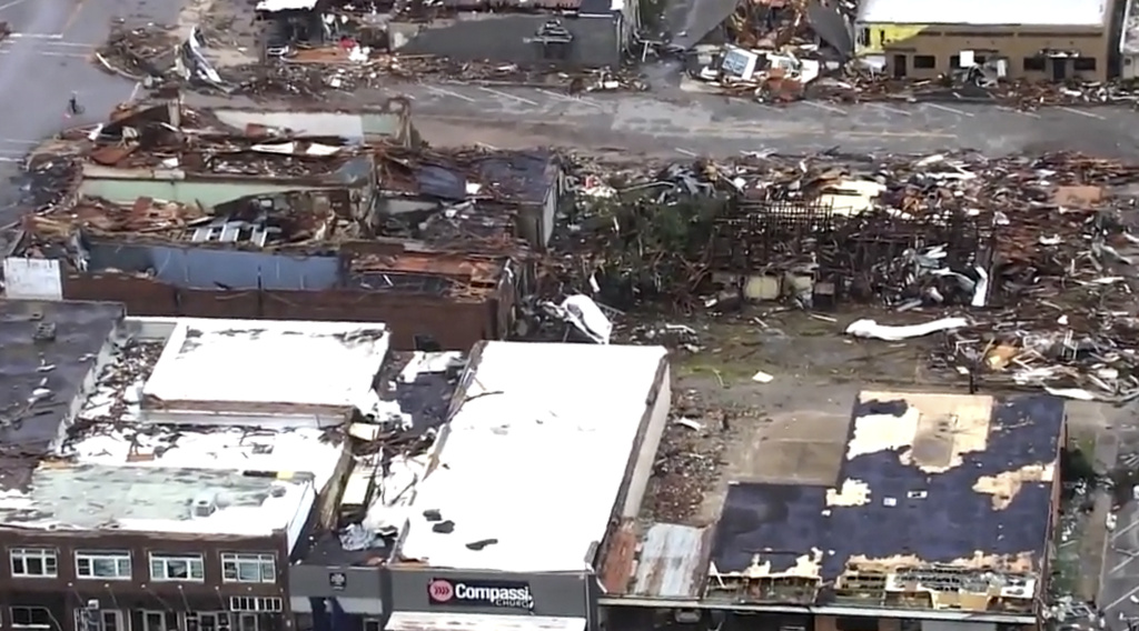 “You just can’t believe the destruction,” Oklahoma Gov. Kevin Stitt said during a visit to the hard-hit town. “It seems like every business downtown has been destroyed.”