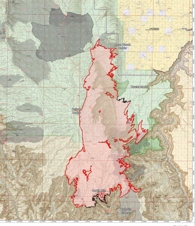 A map of the Dragon Bravo Fire perimeter near the Grand Canyon. (Courtesy Southwest Area Complex Incident Management Team)