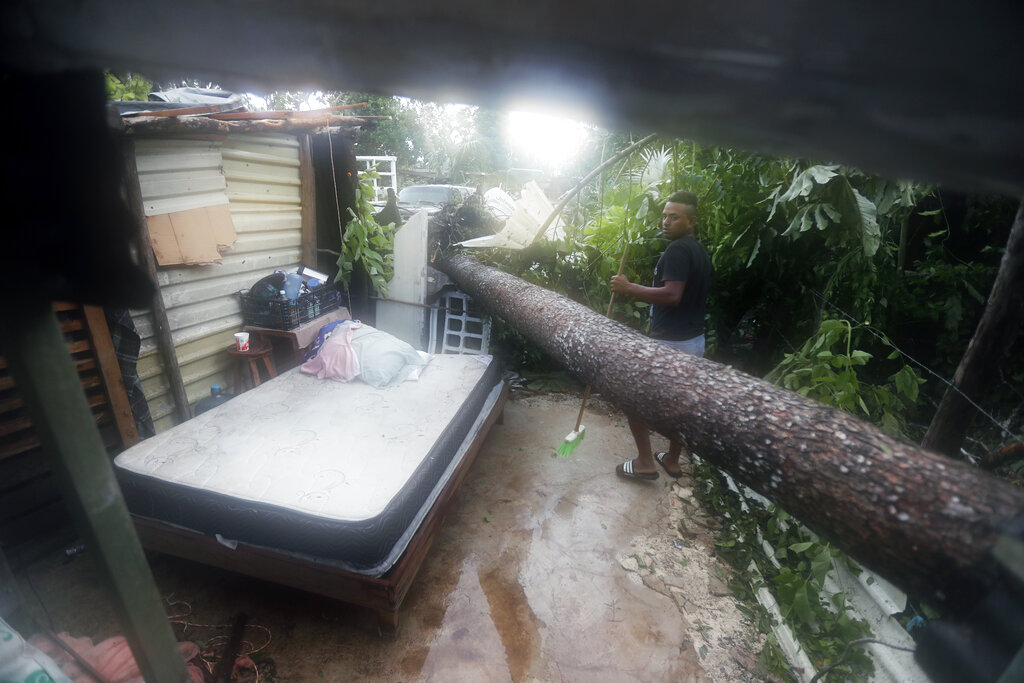 Agustin Mariche begins to clear debris after a tree fell on his room, brought down by the winds of Hurricane Grace in Tulum, Quintana Roo state, Mexico, Thursday, Aug. 19, 2021. The Category 1 storm made landfall at 4:45 a.m., just south of the ancient Mayan temples of Tulum, pelting the Caribbean coast with heavy rain and pushing a dangerous storm surge. (AP Photo/Marco Ugarte)