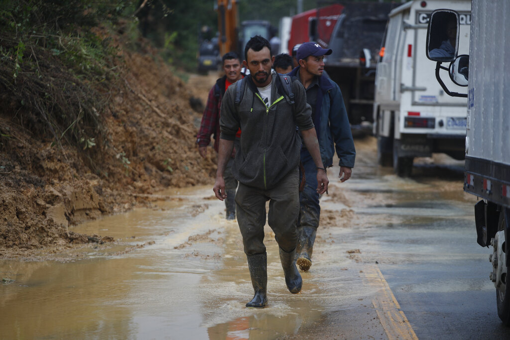 Rescue teams struggled for hours Friday to reach the site from two different approaches. Smaller landslides blocked highways and decimated the dirt road leading to the community of Queja at the base of the slide. The indigenous community of about 1,200 residents consisted of simple homes of wood and tin roofs clinging to the mountainside.